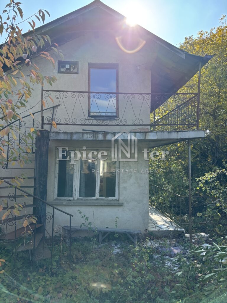 Къщата е масивна, на два етажа - по 50 кв.м застроена площ всеки (общо около 100 кв.м), с външно стълбище и тераса с панорамна гледка.